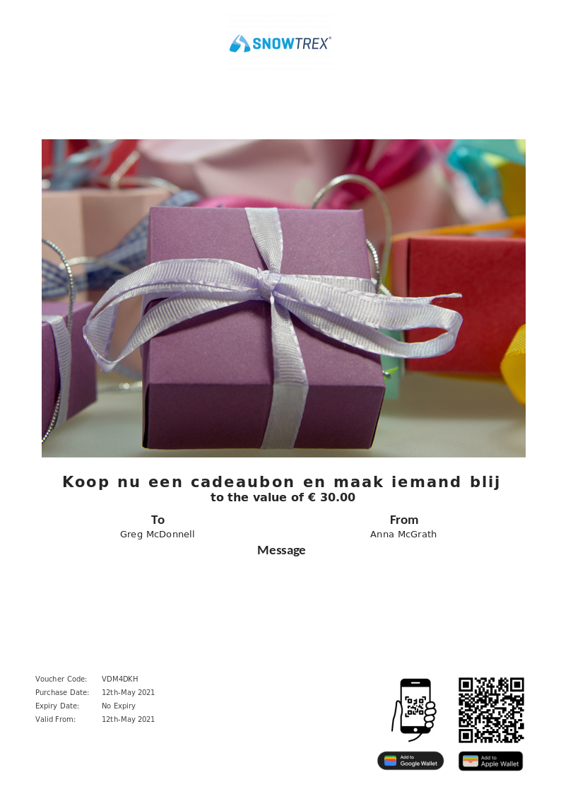 NL - SnowTrex - Cadeaubon allows you to purchase instantly printable gift vouchers, special offers and tickets using the Voucher Connect platform.